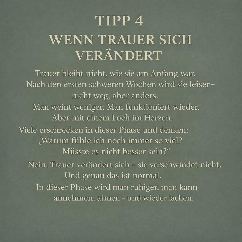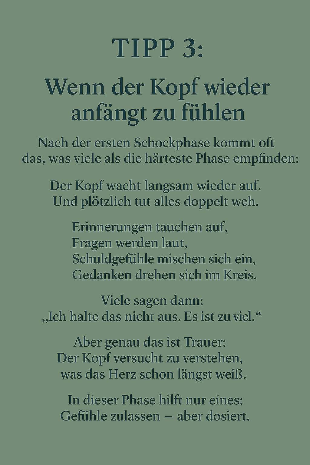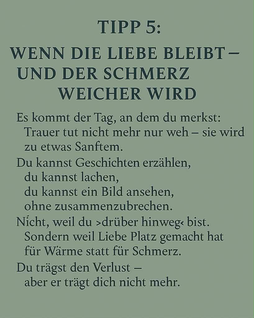 Hier darf alles da sein: Tränen, Wut, Leere, Erinnerungen. Schritt für Schritt, Atemzug für Atemzug – damit aus dem bloßen Aushalten langsam wieder ein Weitergehen wird. Nicht perfekt. Aber echt.